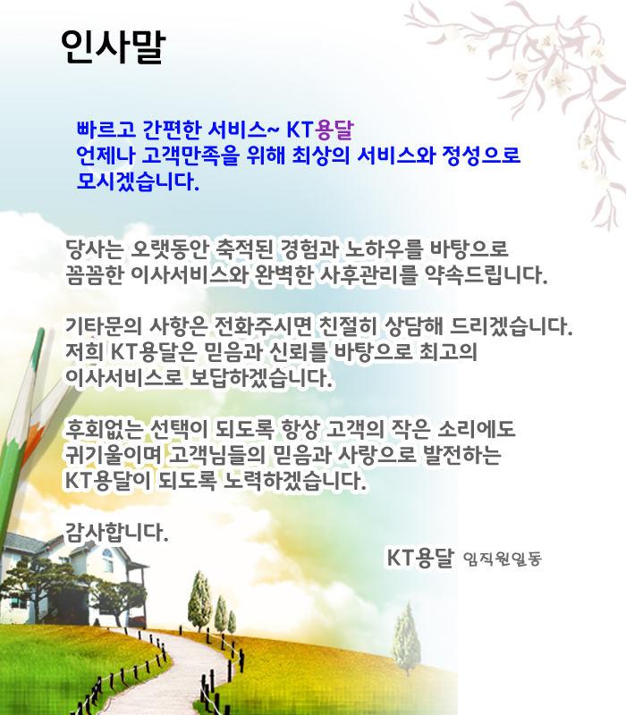 상호 : KT용달 대표 : 김홍래 주소 : 강릉시 입암동 100번지